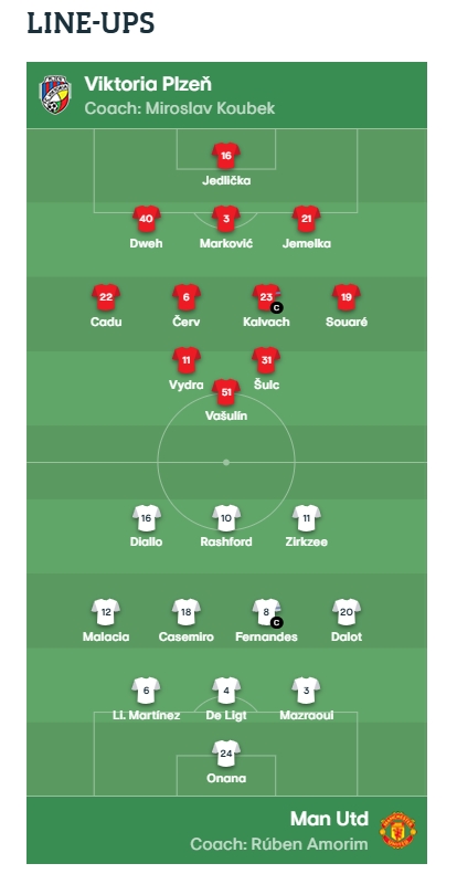12月13日訊 歐聯(lián)杯聯(lián)賽階段第6輪,曼聯(lián)客場對陣比爾森勝利。賽前,官方公布了本場的首發(fā)名單。